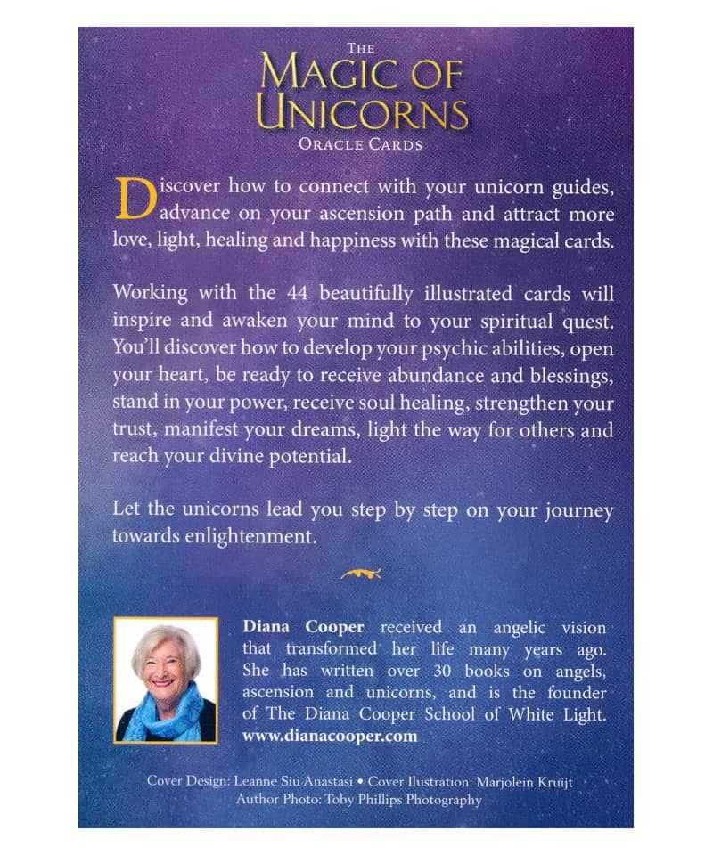 暢銷書作家黛安娜庫柏的這套美麗牌卡內有 44 張牌,提供指導、智慧和鼓勵,讓你在通往開悟的道路上,跟隨獨角獸指引前進。